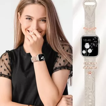 Floral Engraved Silicone Band with Charms for Apple Watch